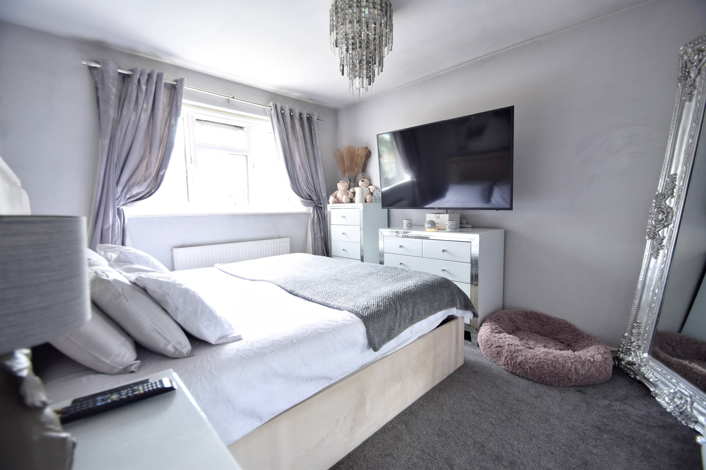 A double bedroom with integrated wardrobe space and views over the rear garden.