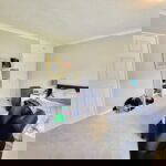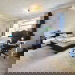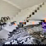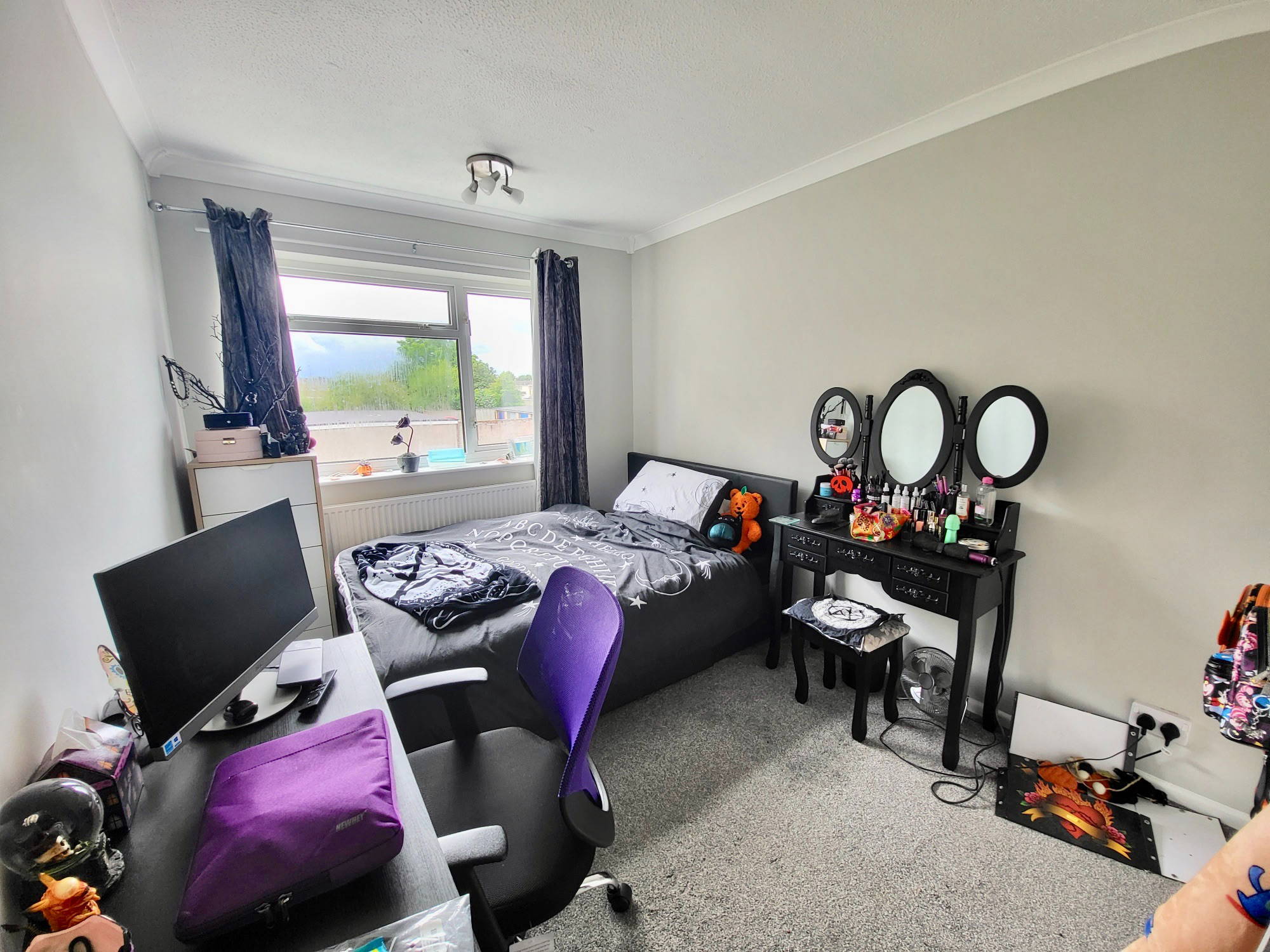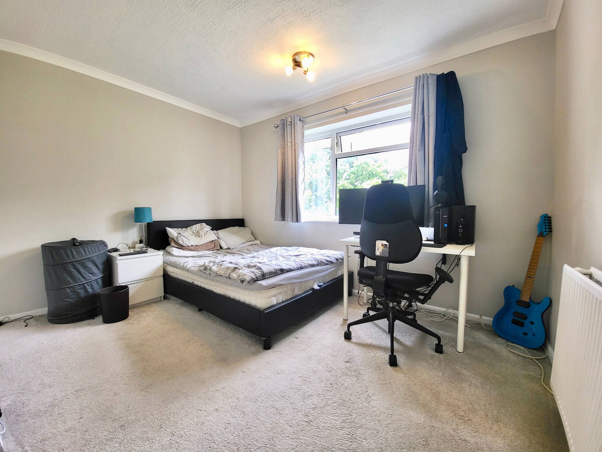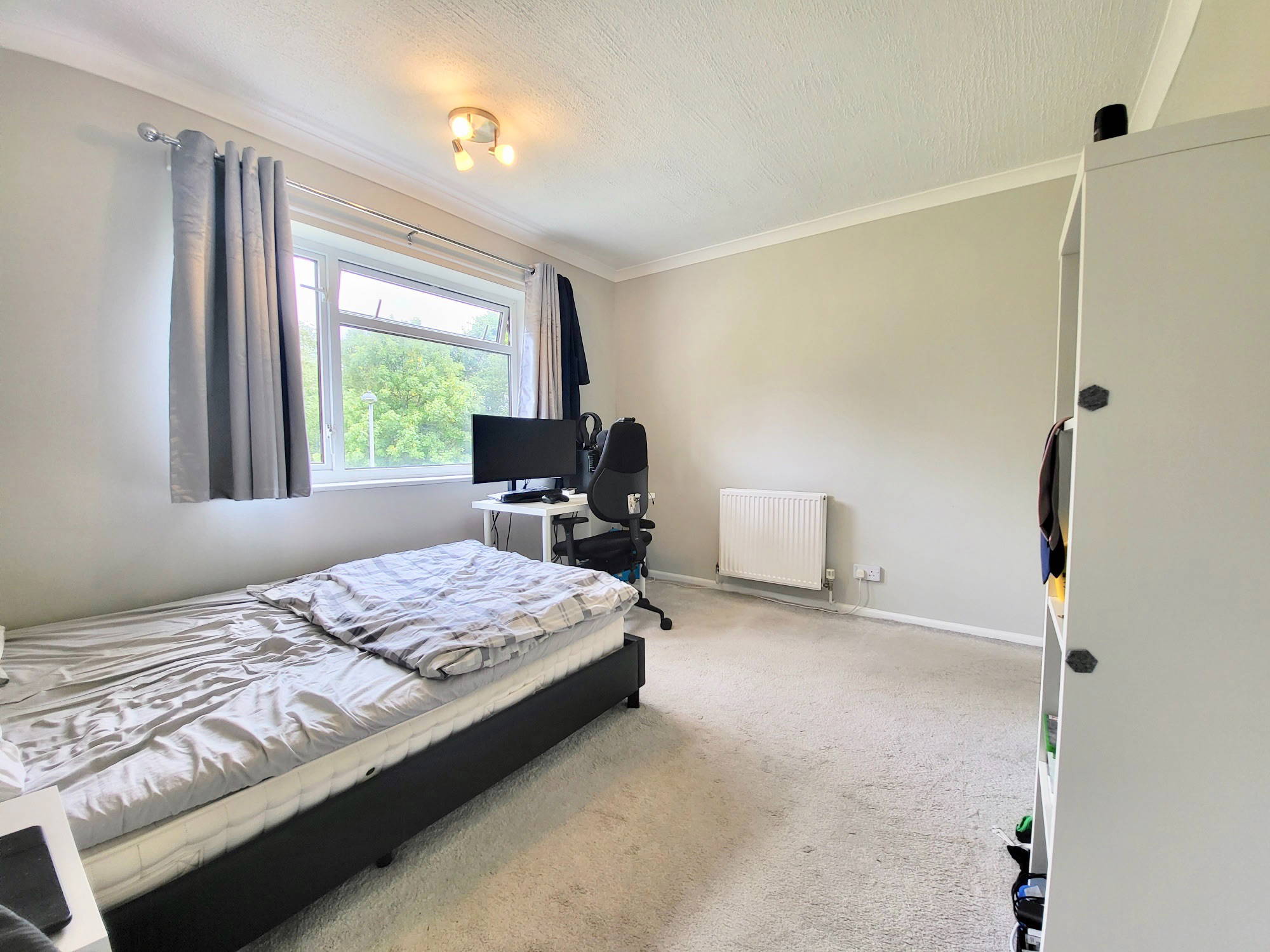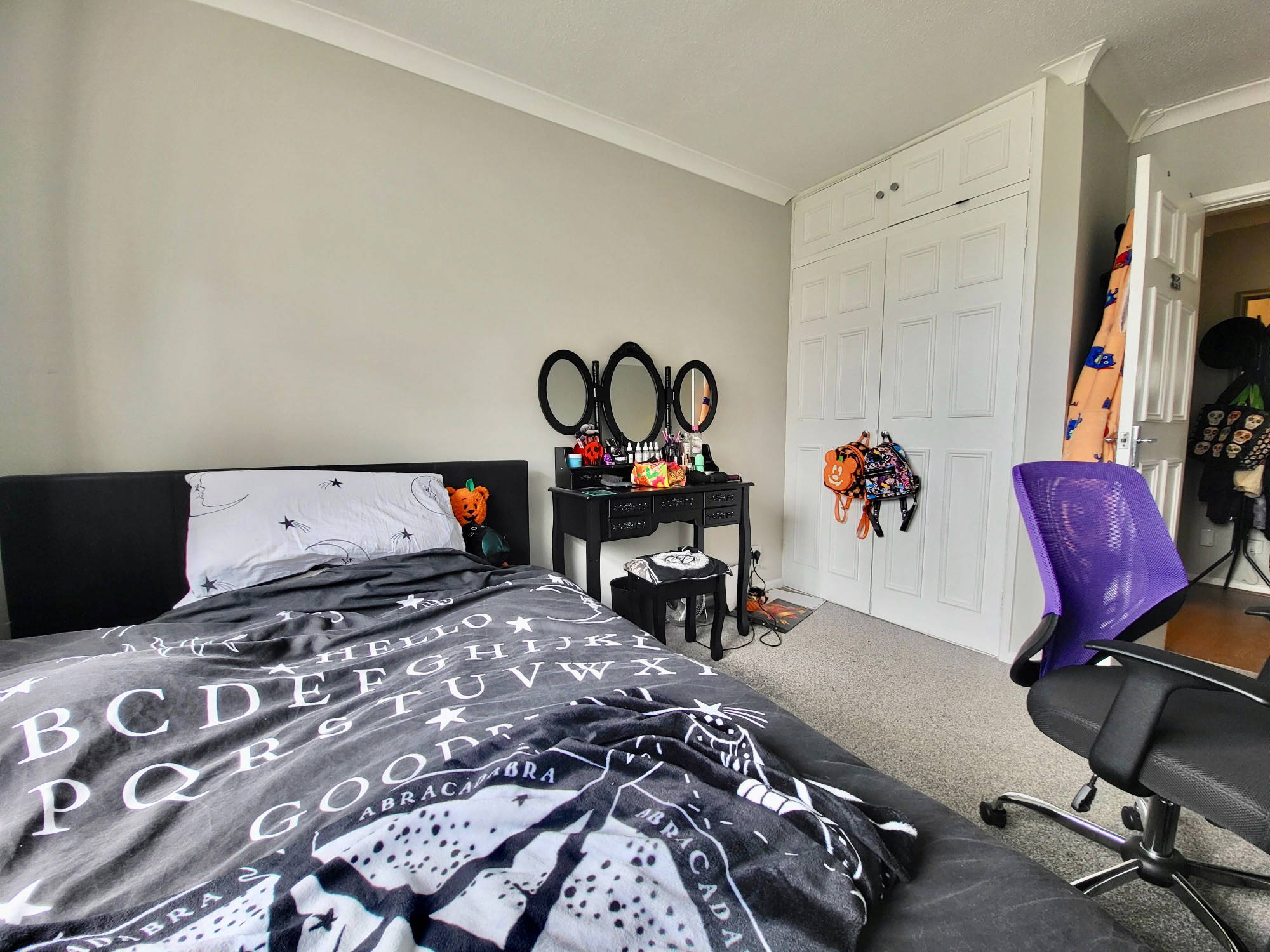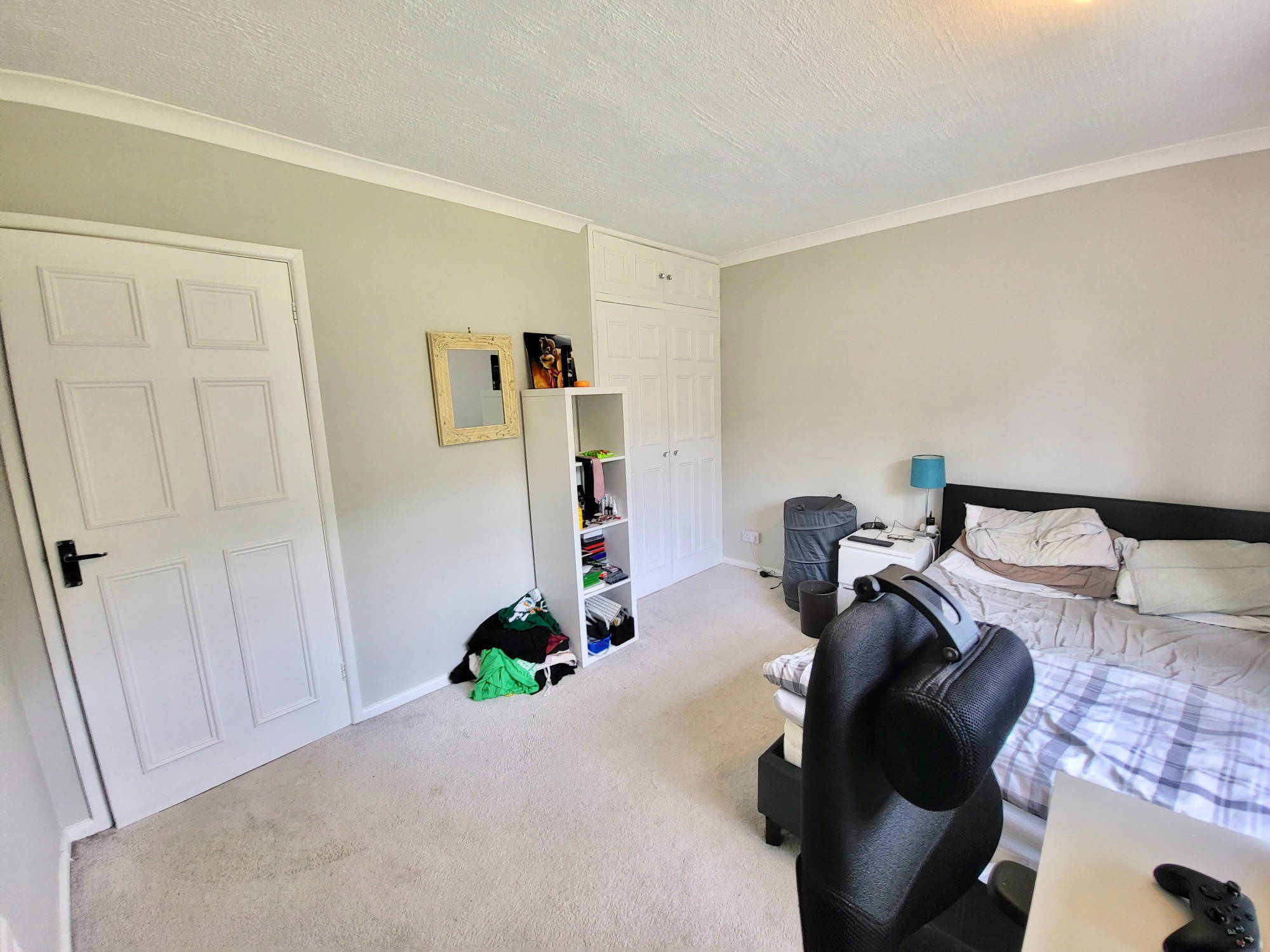A spacious bedroom with built in wardrobe space