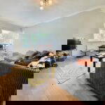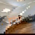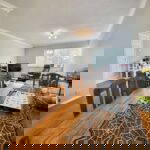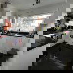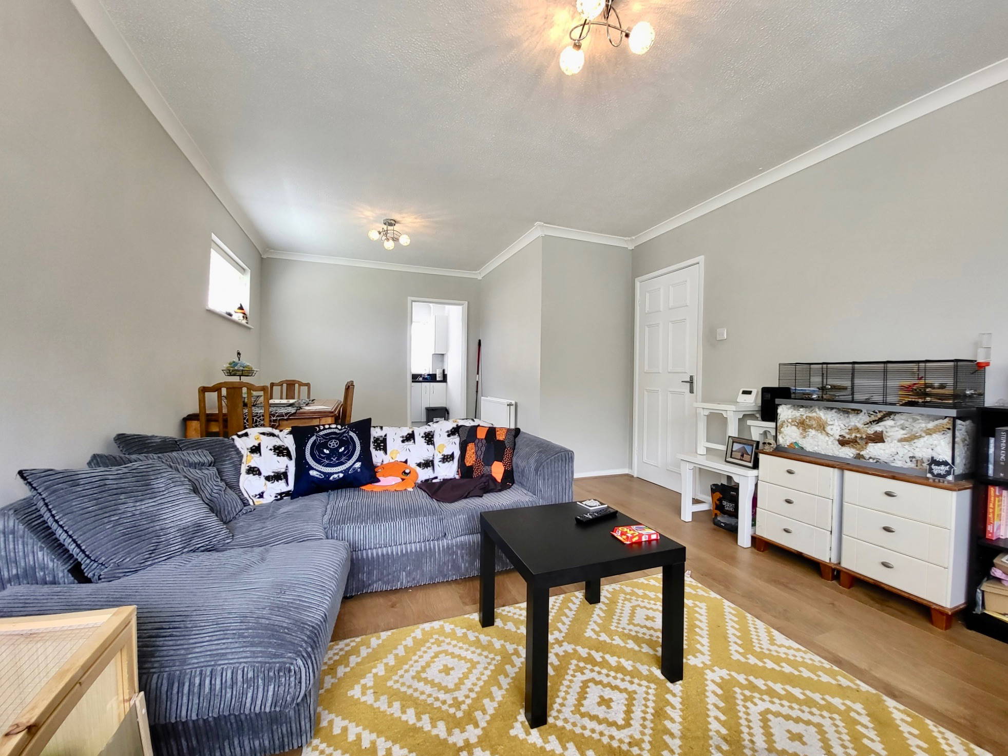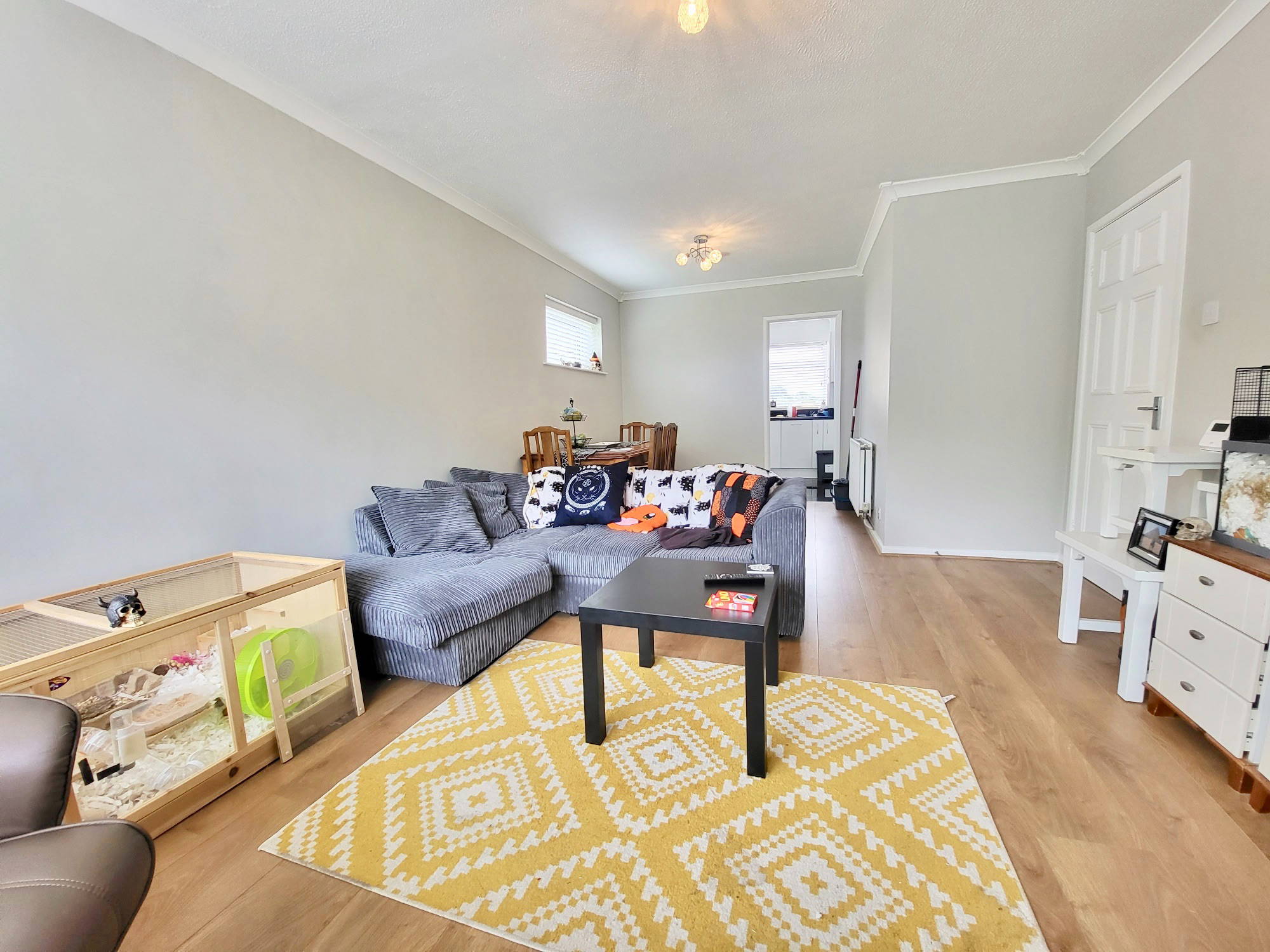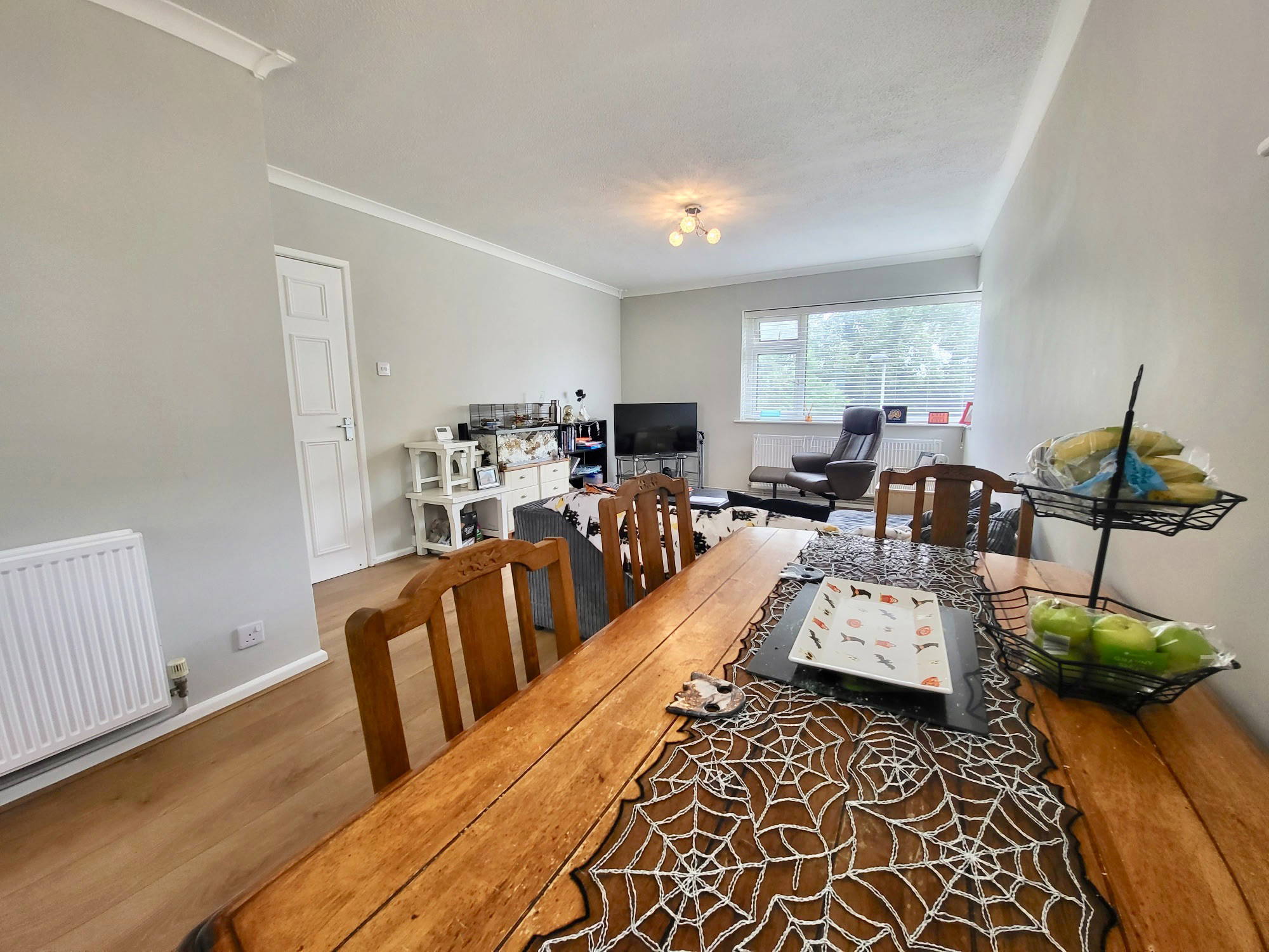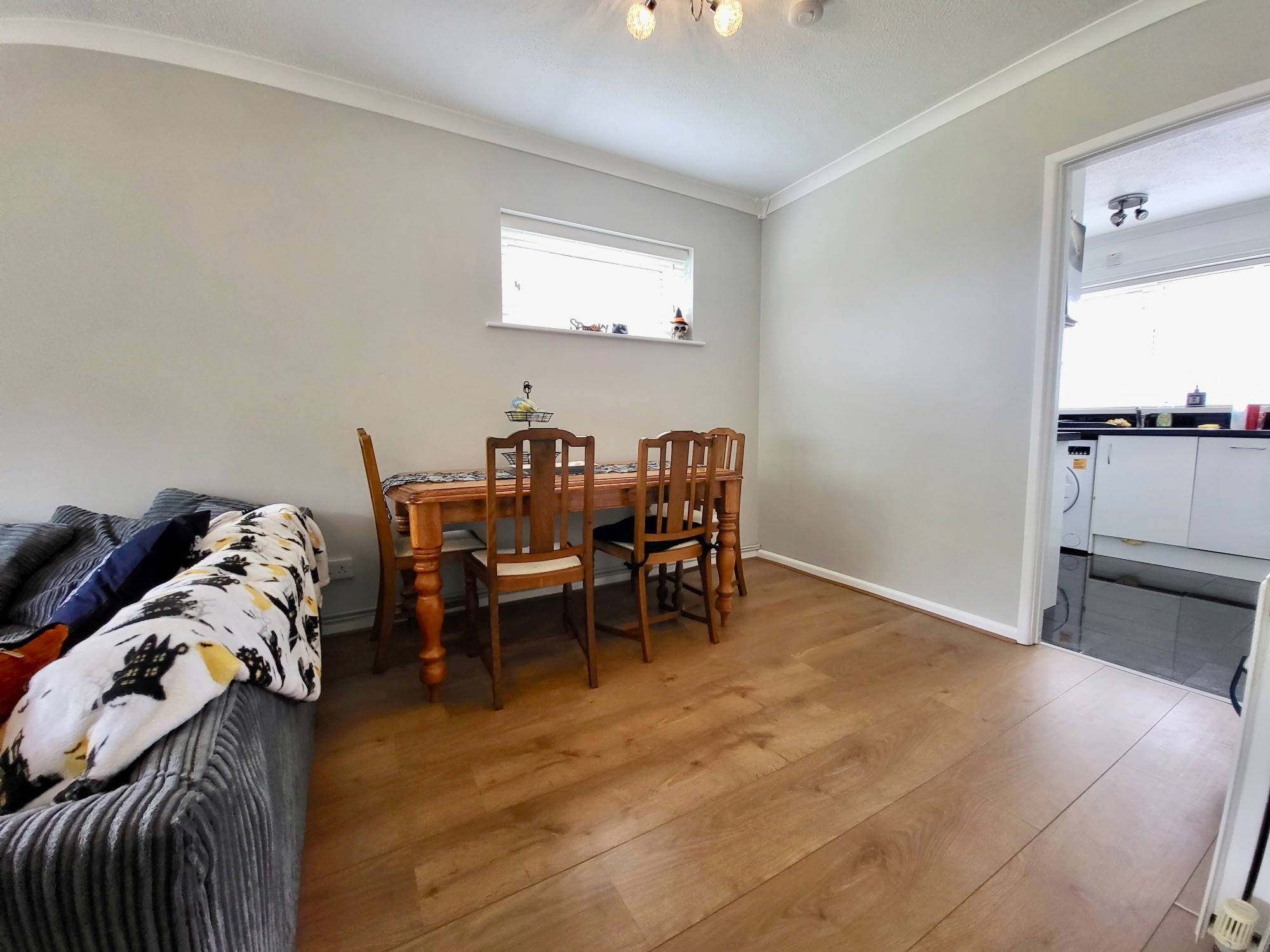 A sizeable lounge/diner with modern decor and plenty of light and space