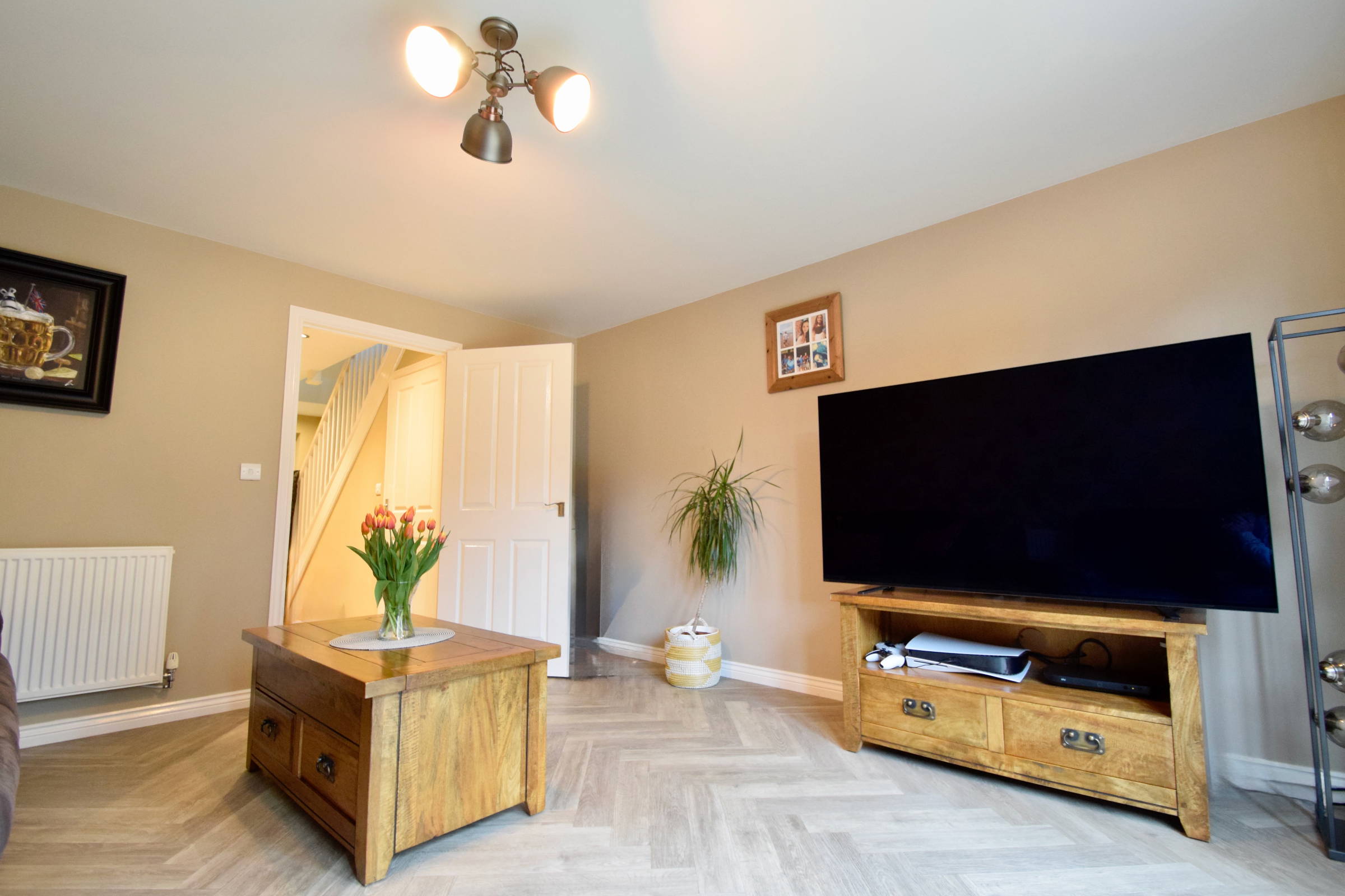 Open and spacious lounge area with ample space for seating and patio doors leading out to the enclosed garden.