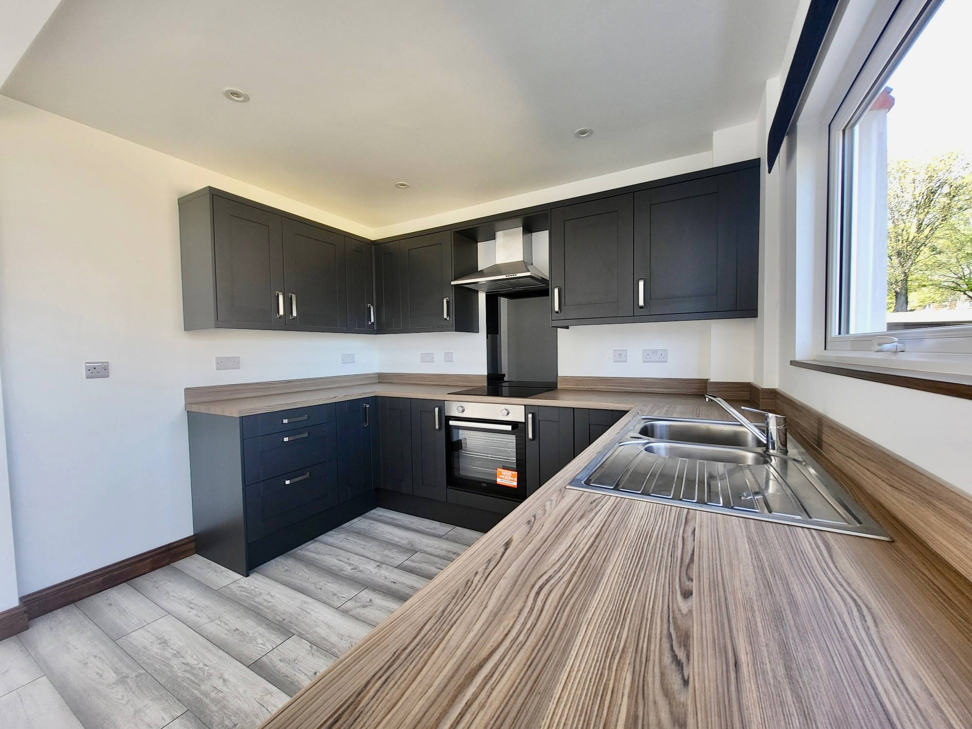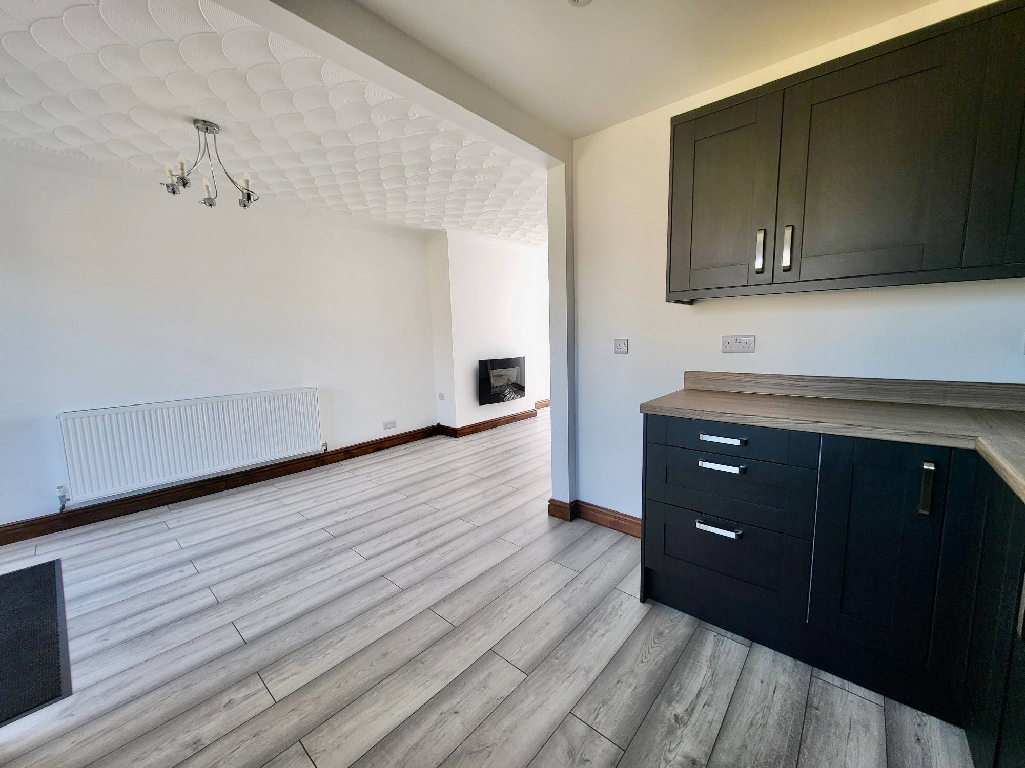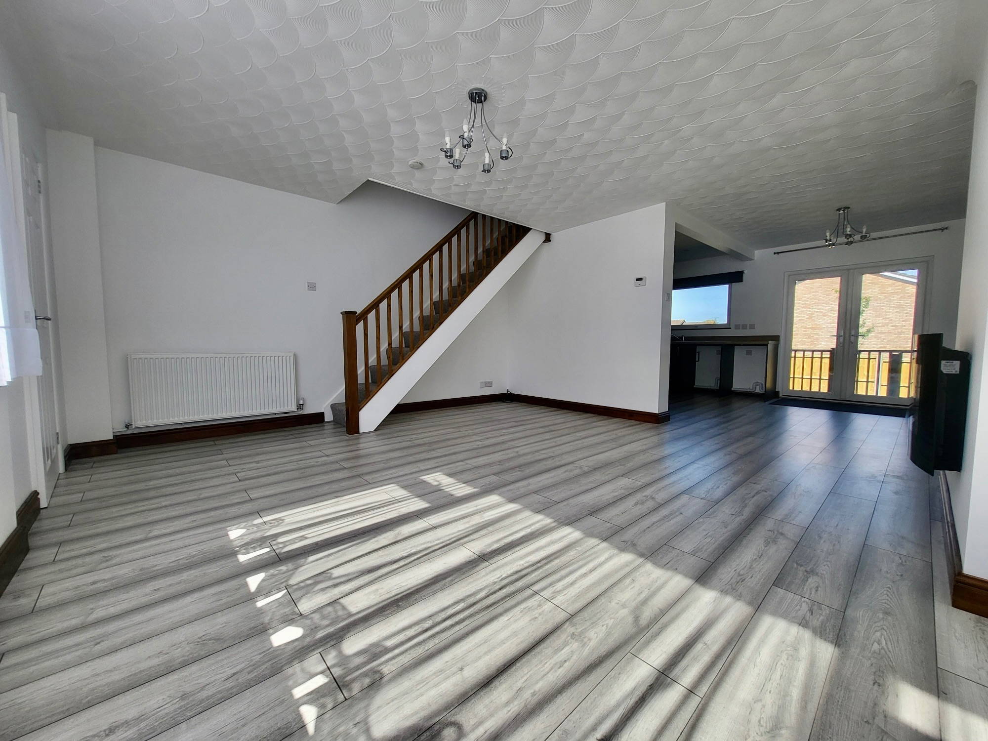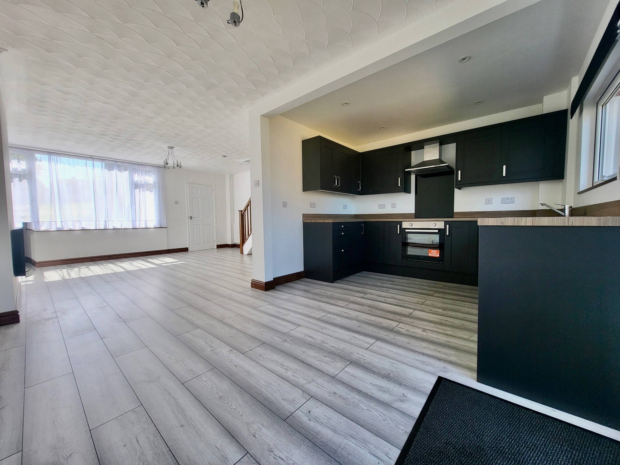 The ground floor of the property offers an open plan new modern kitchen/dining/living area and entrance porch with neutral decor.