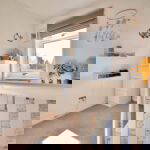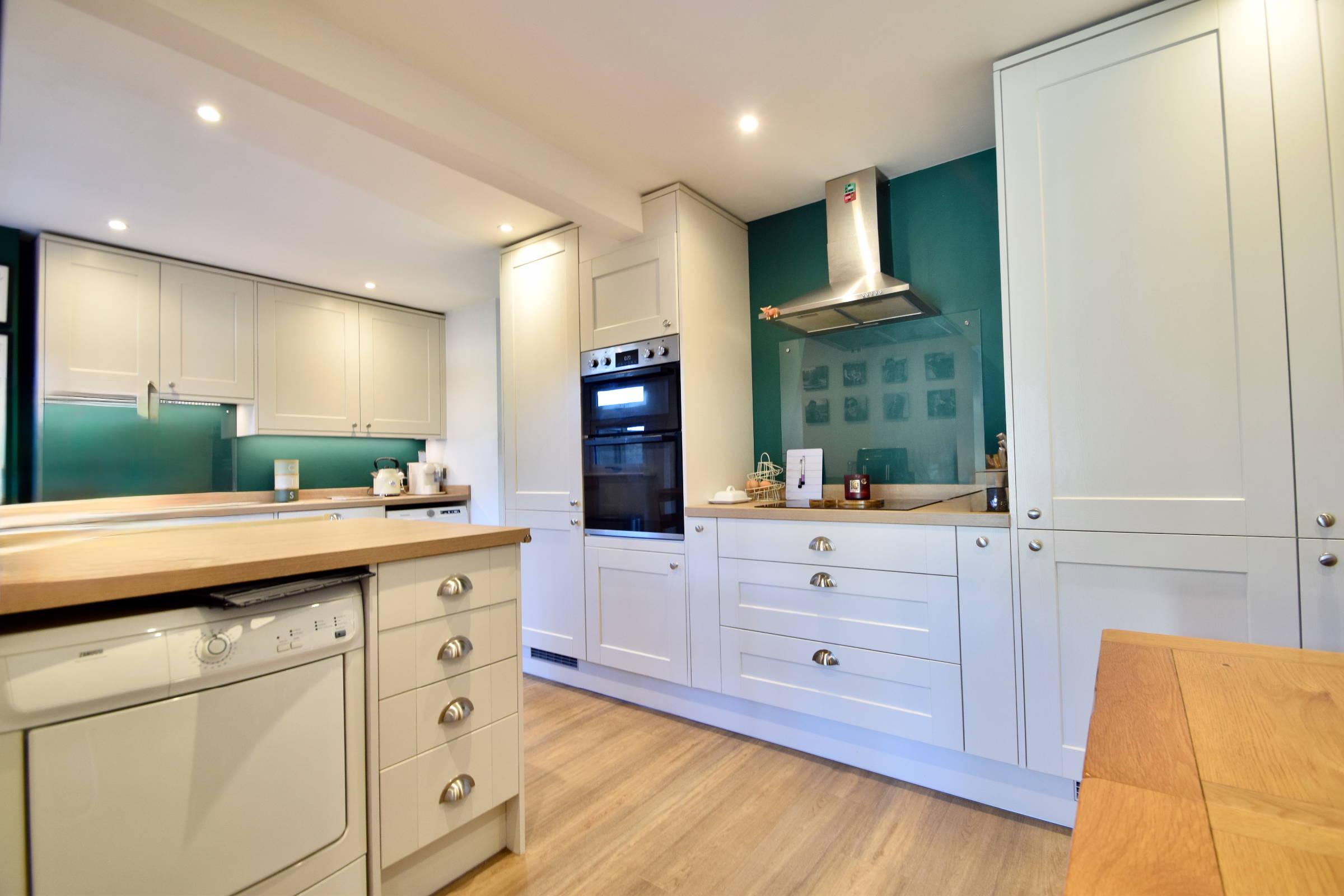 Newly modernised and vastly improved, this contemporary kitchen houses plenty of base and eye level units, handy breakfast bar, integral appliances, built in oven and hob and additional space for seating.
