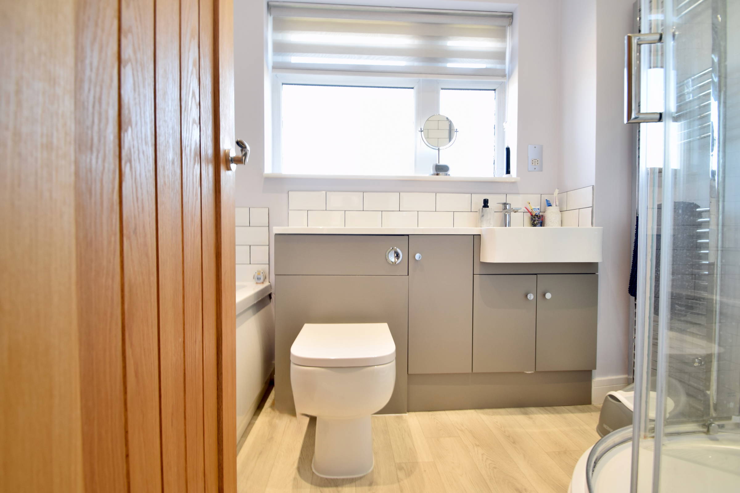 Upgraded by the current owners, complete with a free standing shower cubicle, separate bath, and under sink vanity unit.