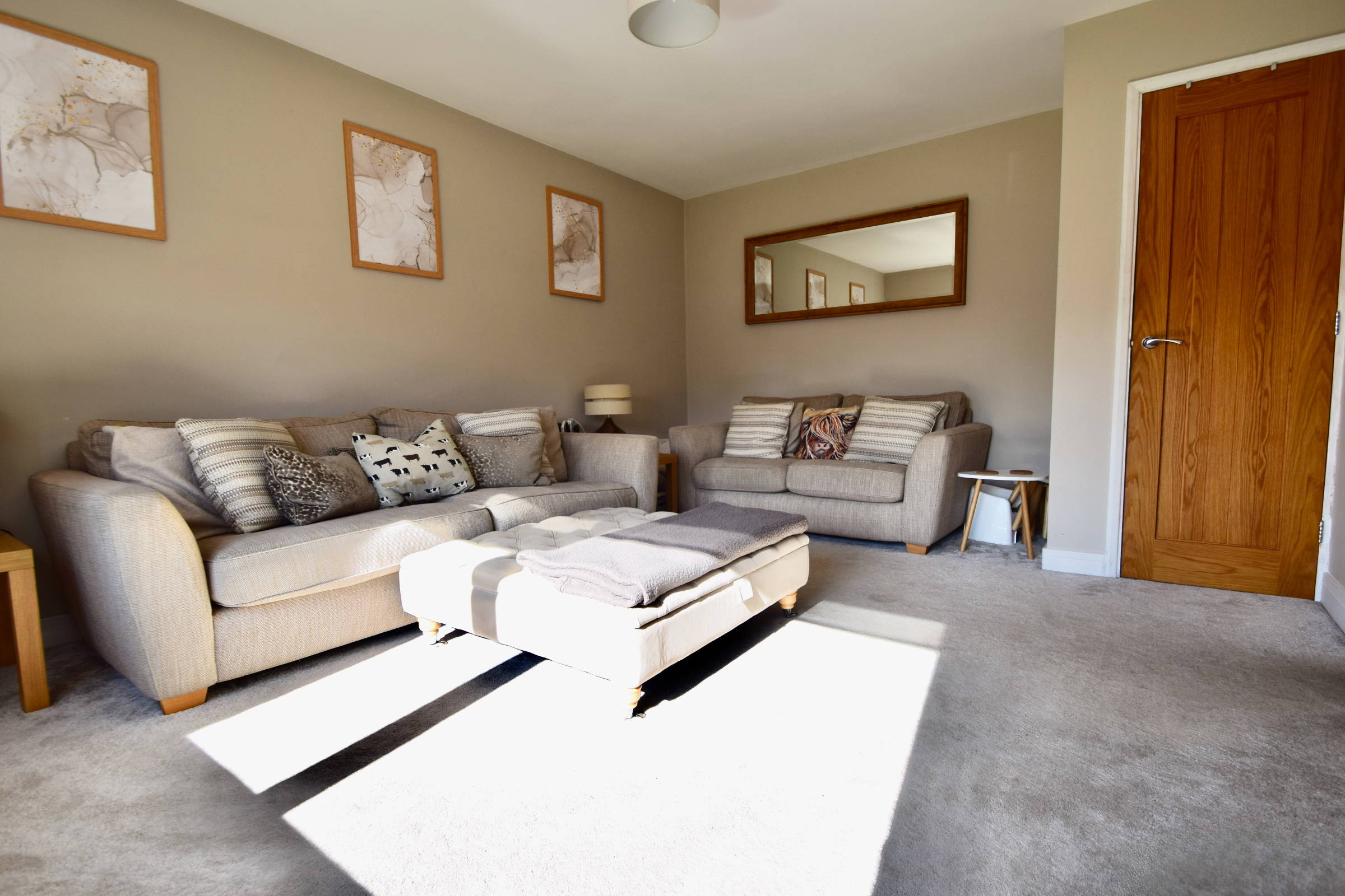 A beautifully decorated, light and spacious living space with plenty of room for seating, integral cupboard and views to the front of the property.