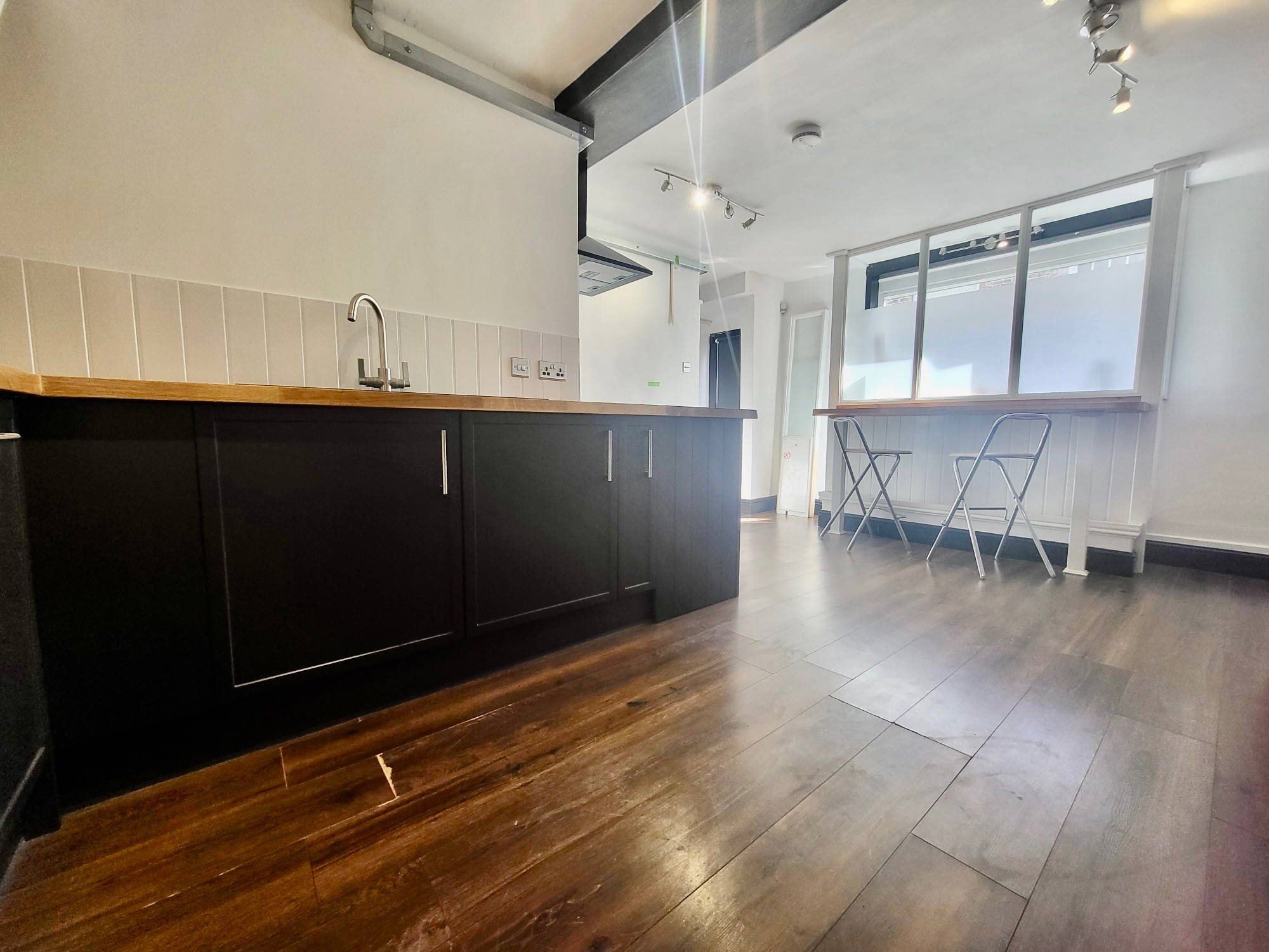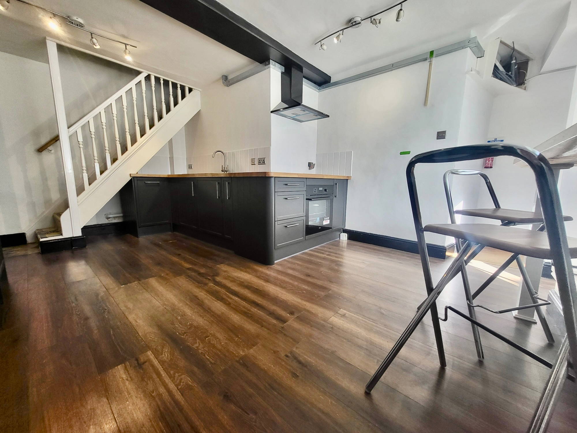 A two bedroom apartment that has been converted to a stylish home with a new kitchen, shower room and loft space with neutral decor throughout.