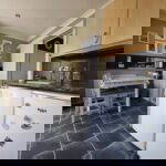 UPVC double glazed window to rear, fitted wall and base units with granite effect work surfaces, under cupboard lights, single bowl stainless steel dual sink unit, tiled splashback, plumbing for automatic washing machine, space under units for separate fridge and freezer, combi central heating boiler, radiator, UPVC French doors to rear garden.