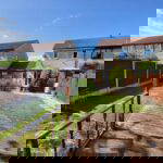 South facing rear garden. Decking area directly from the kitchen/diner through UPVC French style doors, to the side is a patio and rear access to the garage, outside tap and lights. The garden has a decked area to the top of the garden with a shed and boundary fencing