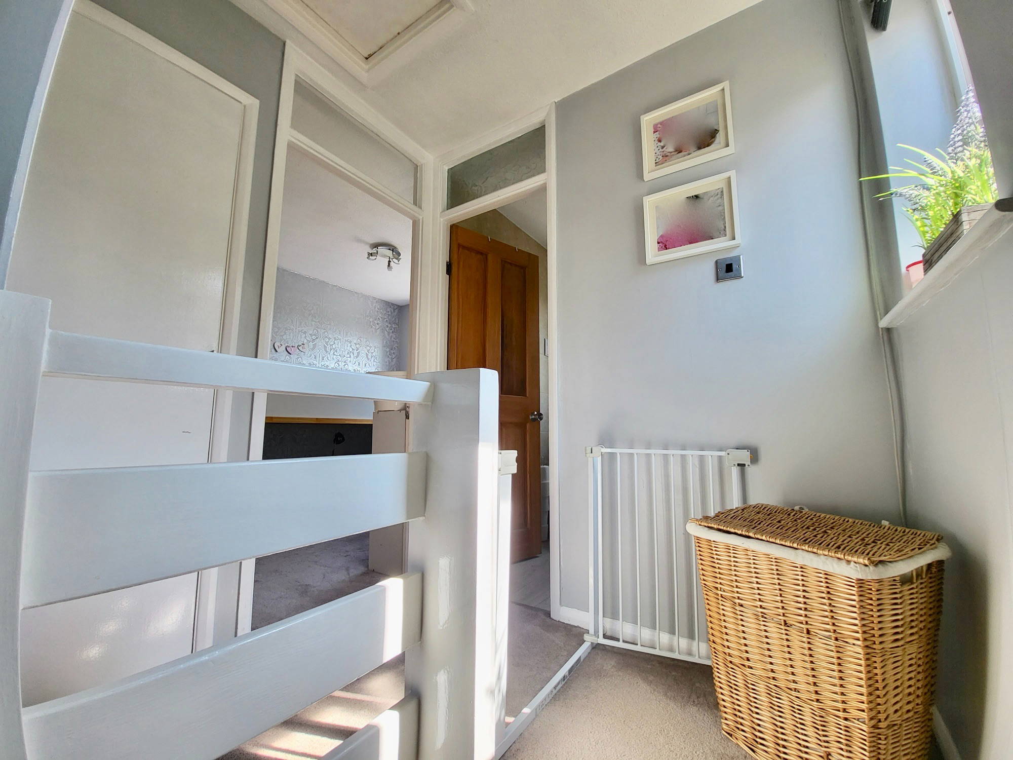 Stairs from entrance hall, UPVC double glazed window to side, cupboard and shelves, access to loft.